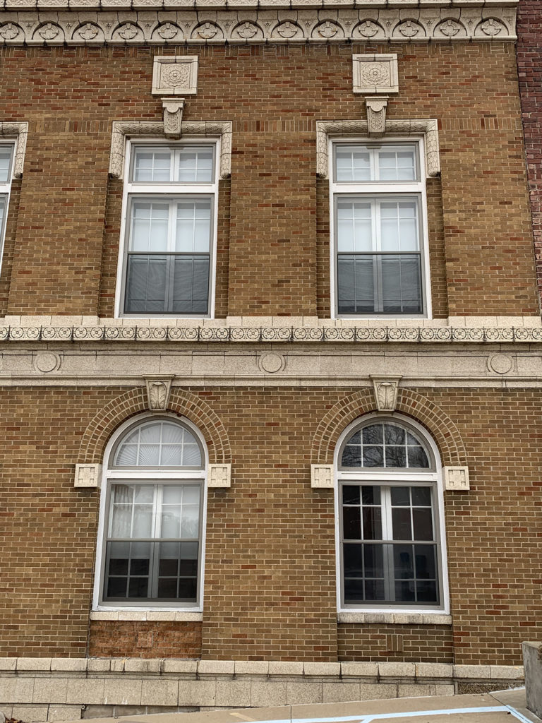 The exterior remained substantially as original. A detailed window analysis and repairs were performed as part of the project. Storm panels were added but, in a design, which followed the muntin pattern of the main window. The exterior brick and terra cotta were selectively tuckpointed using NPS standards. The interior of the walls was insulated to the maximum extent possible without jeopardizing the historic trim of the existing windows. An elevator was added for ADA compliance. Major floor and roof structural repairs were required.